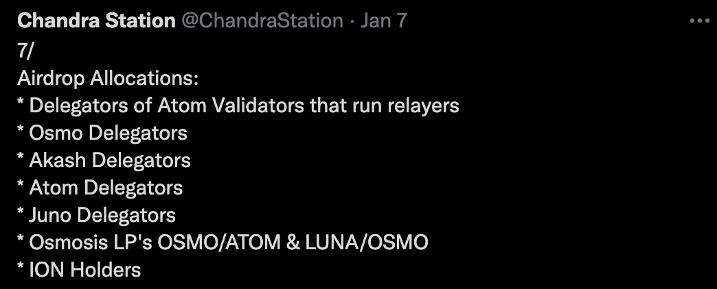 참고로 이번 찬드라 스테이션에서 주는 에어드랍 혜택의 대상자는 대략 이렇다.