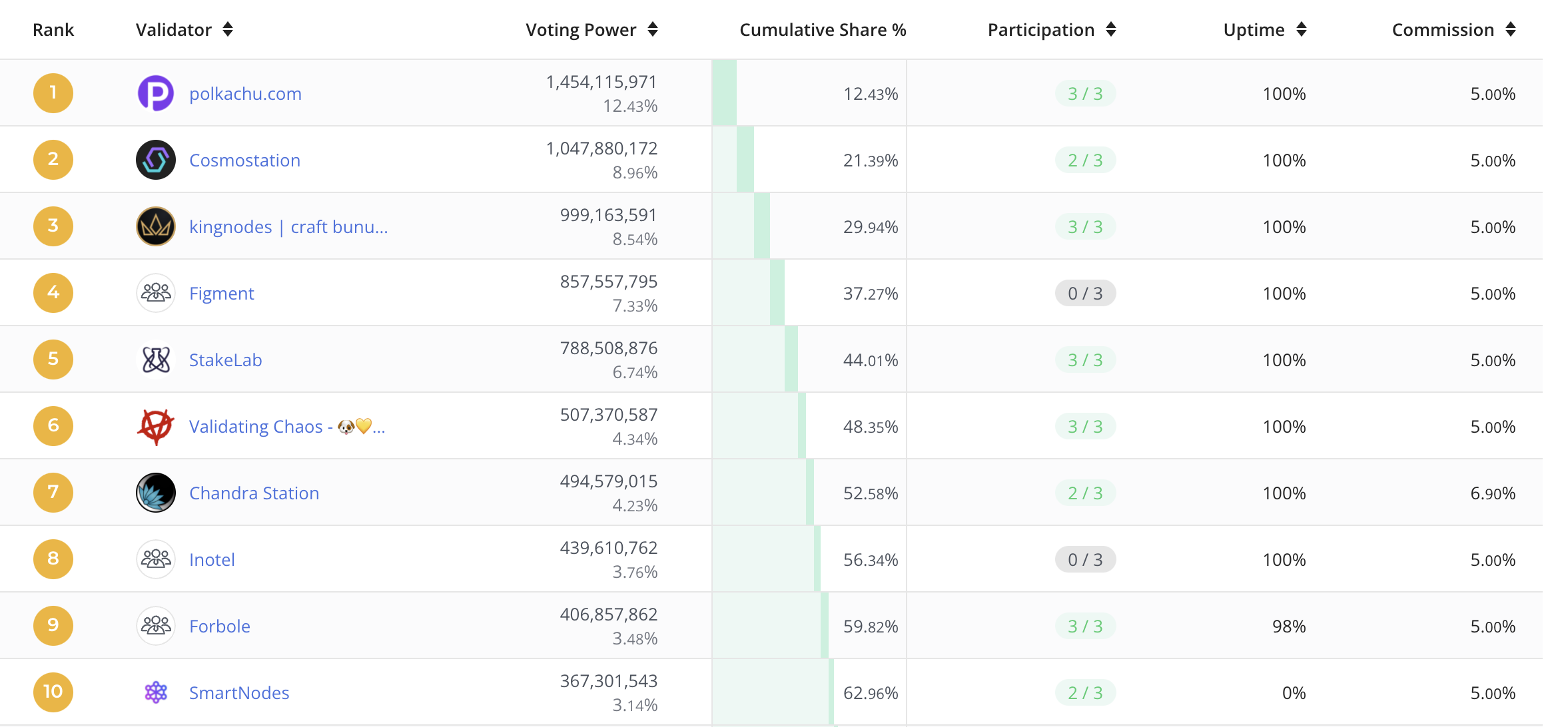 - 오스모시스에서는 Chandra staion이 검증인 순위 10위다.
