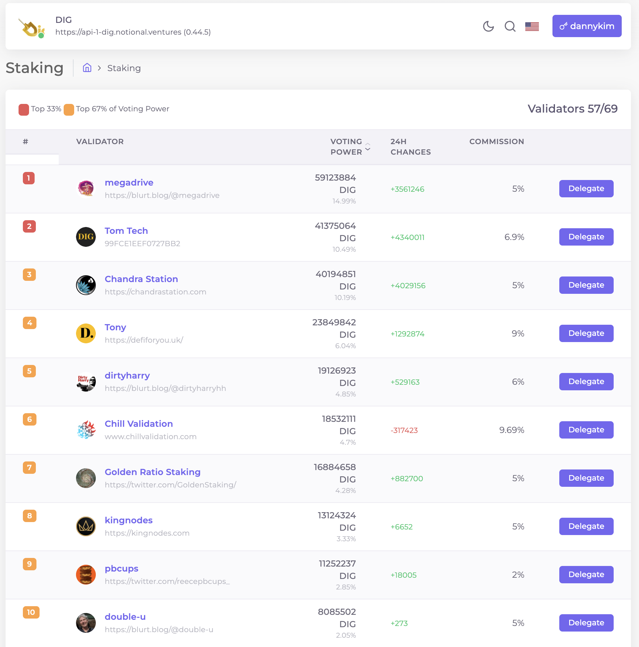 - 가장 최근에 런칭한 DIG 검증인에서는 순위가 3위다.