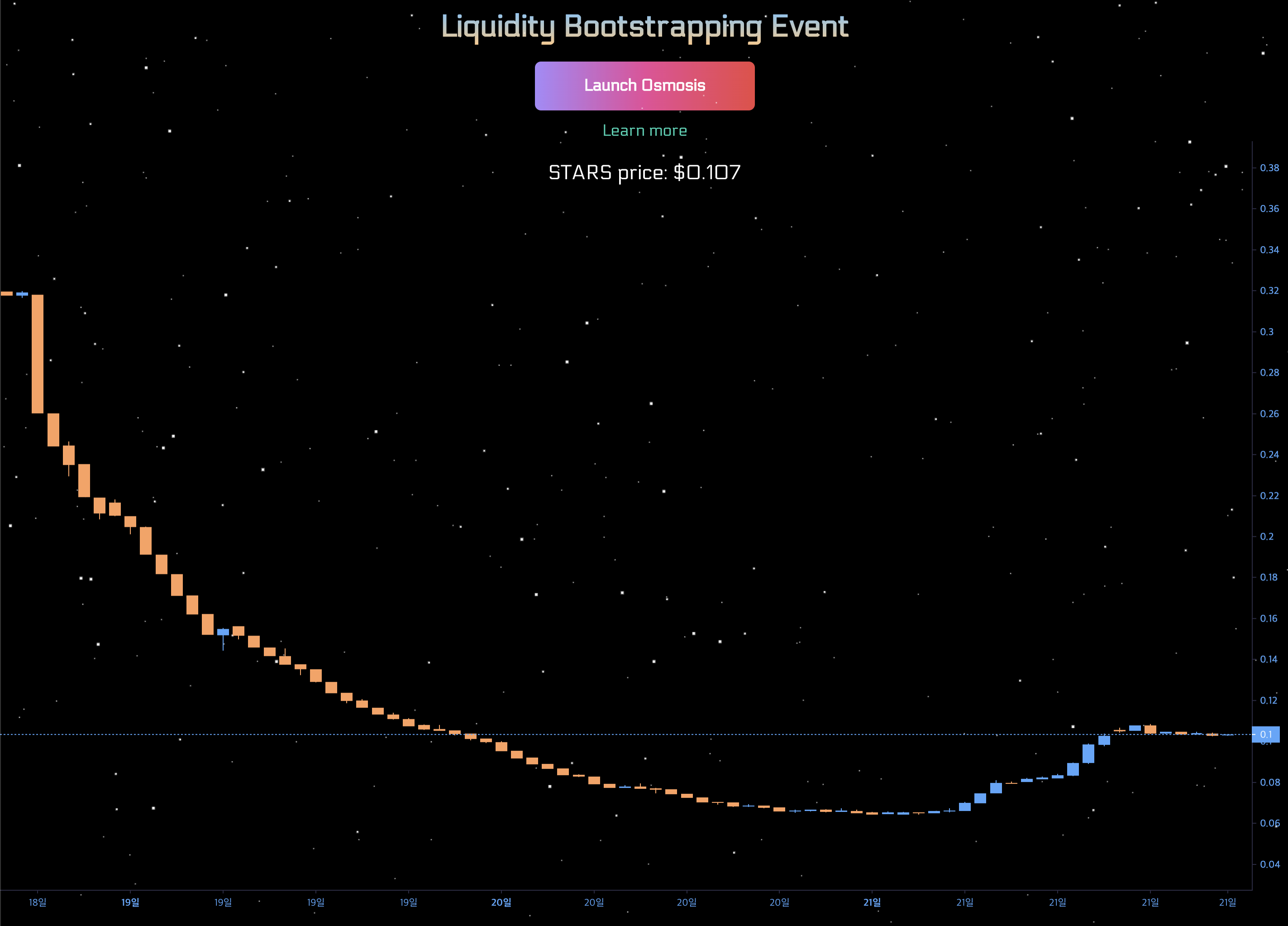 - 오스모시스에서 초기 LBP로 판매를 시작하였고, LBP 초기 가격은 $0.32에서 종가가 $0.1 정도 된다.