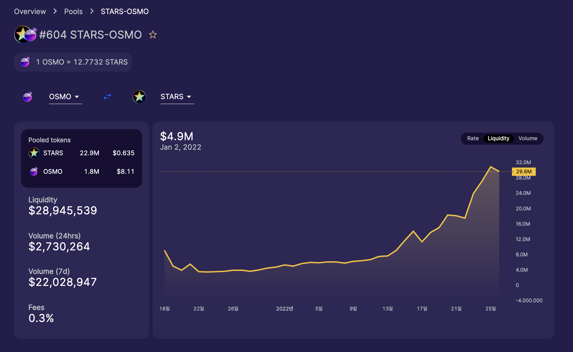 풀은 OSMO-STARS, ATOM-START 두 풀이 있는데, 오스모-스타즈 풀에 참여한 LP는 30밀리언(약 360억원)달러정도 된다.