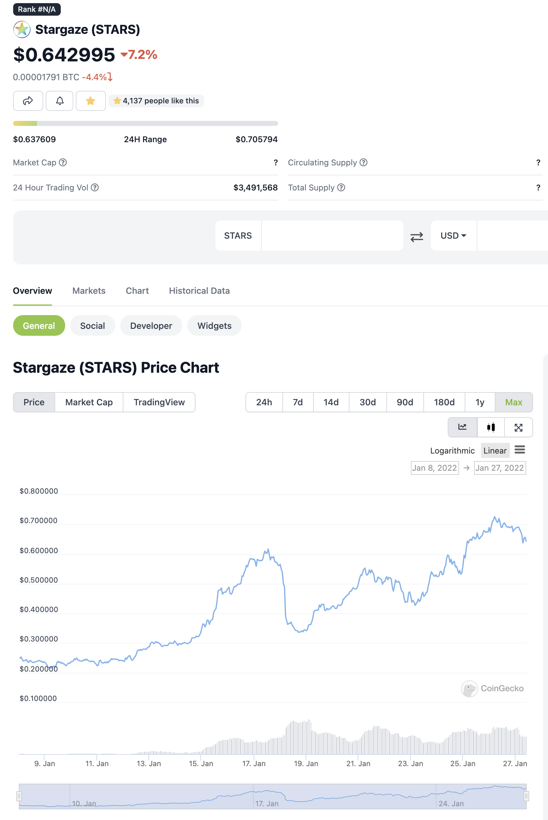 - 코인게코기준 아직 시총 순위 Rank는 없다.