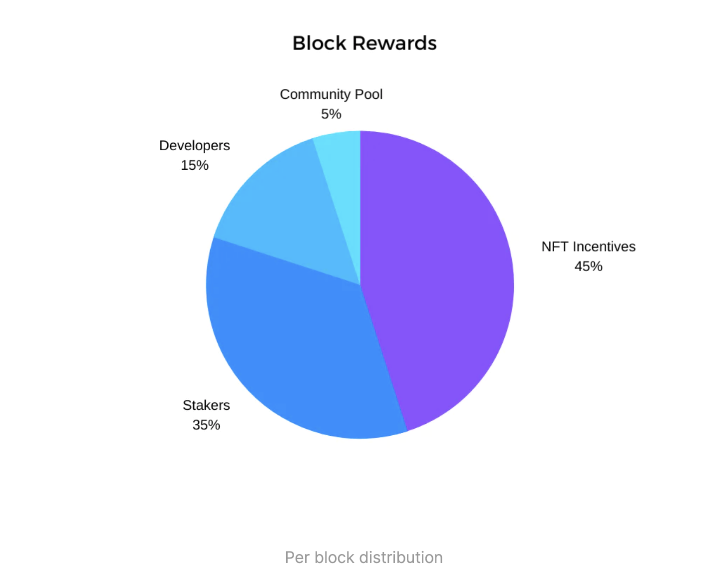 - 스테이킹 리워드가 35%, 개발자 및 커뮤니티 풀이 20%, NFT 인센티브가 45%다.