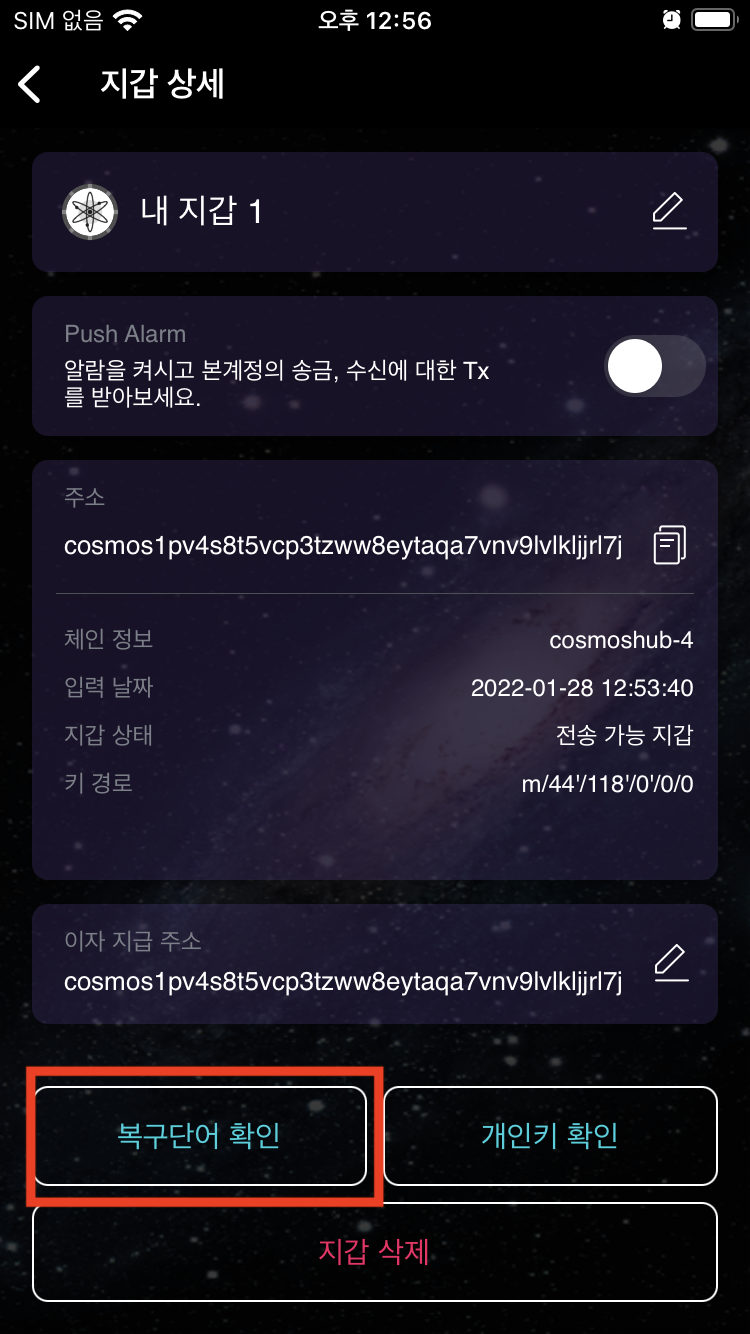 3.3 지갑상세에서 복구단어 확인