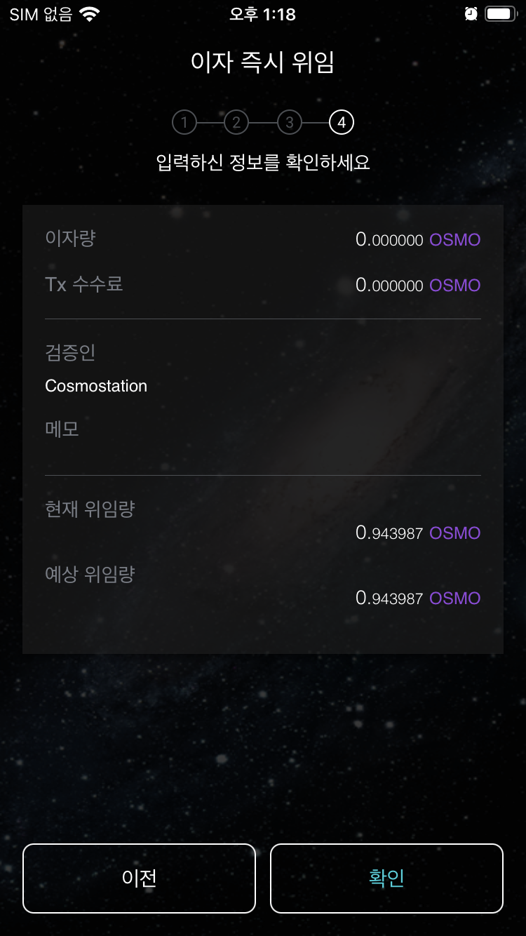 7. 오스모시스 IBC에서 받은 ATOM을 오스모로 교환 후 스테이킹 하기