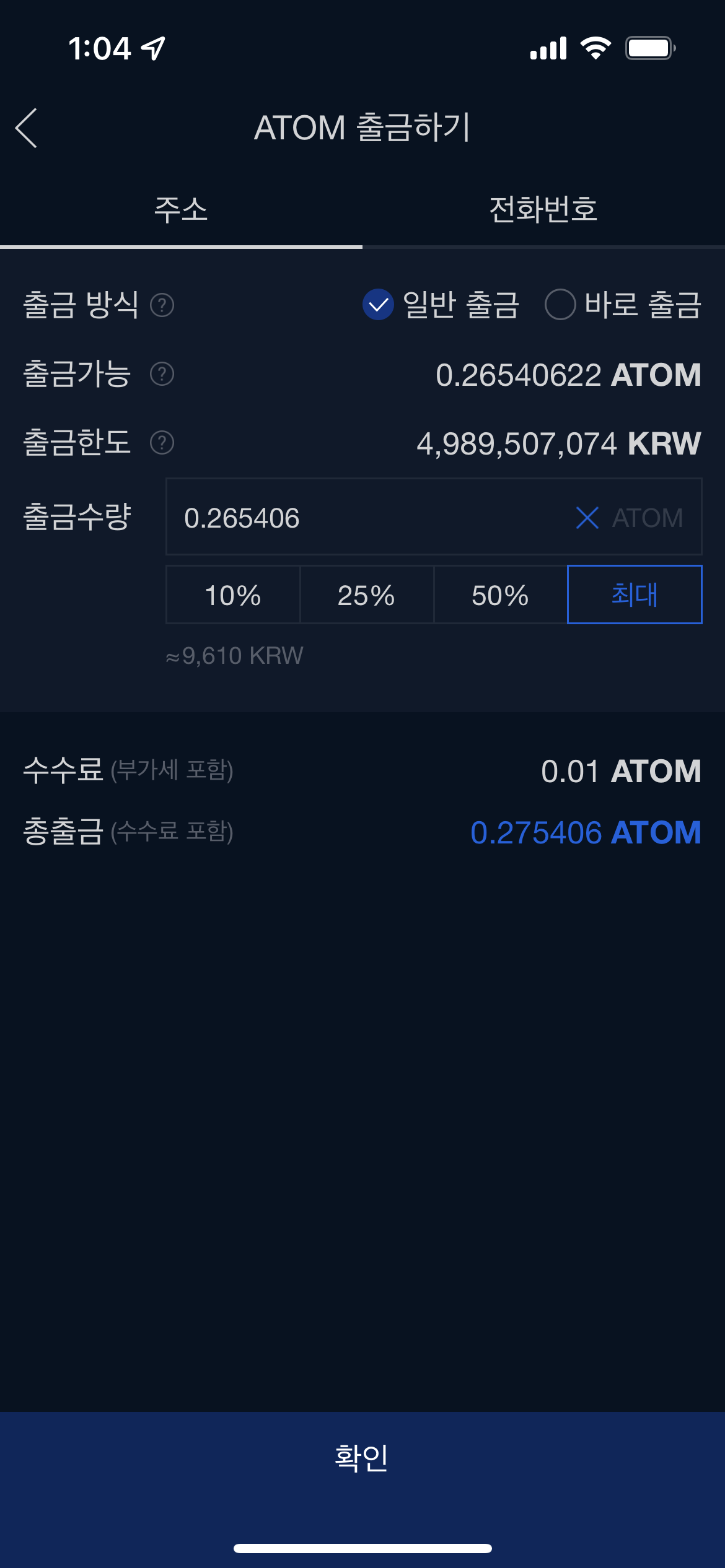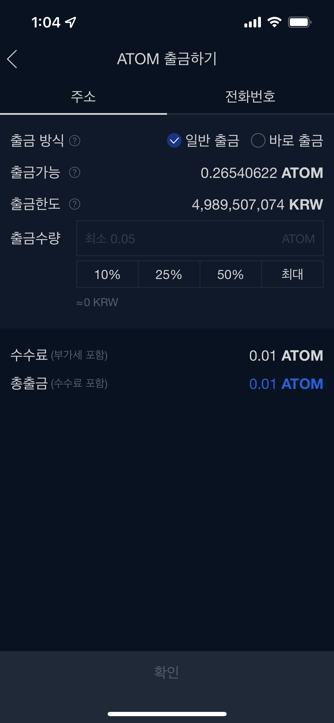 5.5 ATOM 입출금에서 출금하기 선택