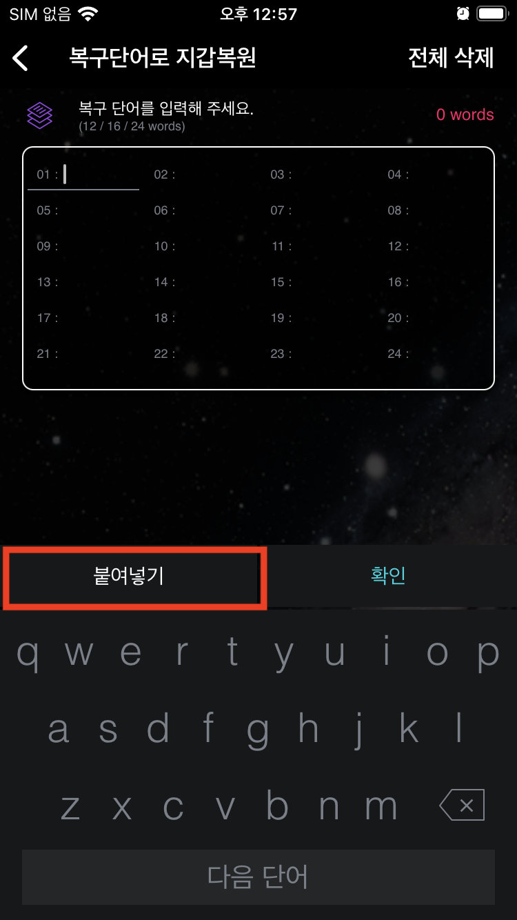 4.3 지갑복원 - 복구문자
