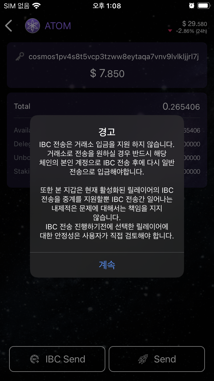 - 일반적으로 100 아톰을 보낸다면, 1아톰을 먼저 보내고 받은걸 확인 후 나머지 보내는걸 추천한다!!!