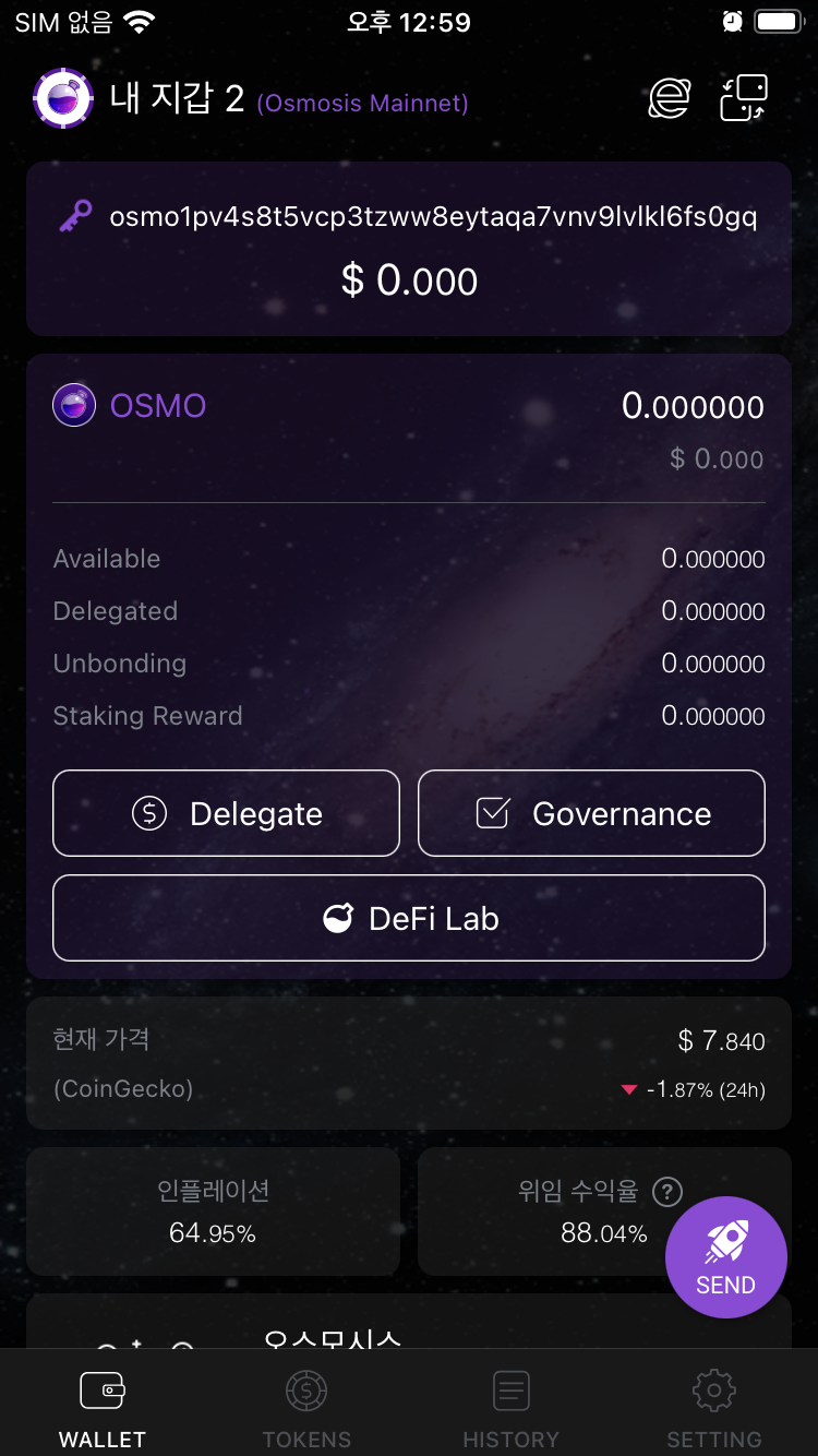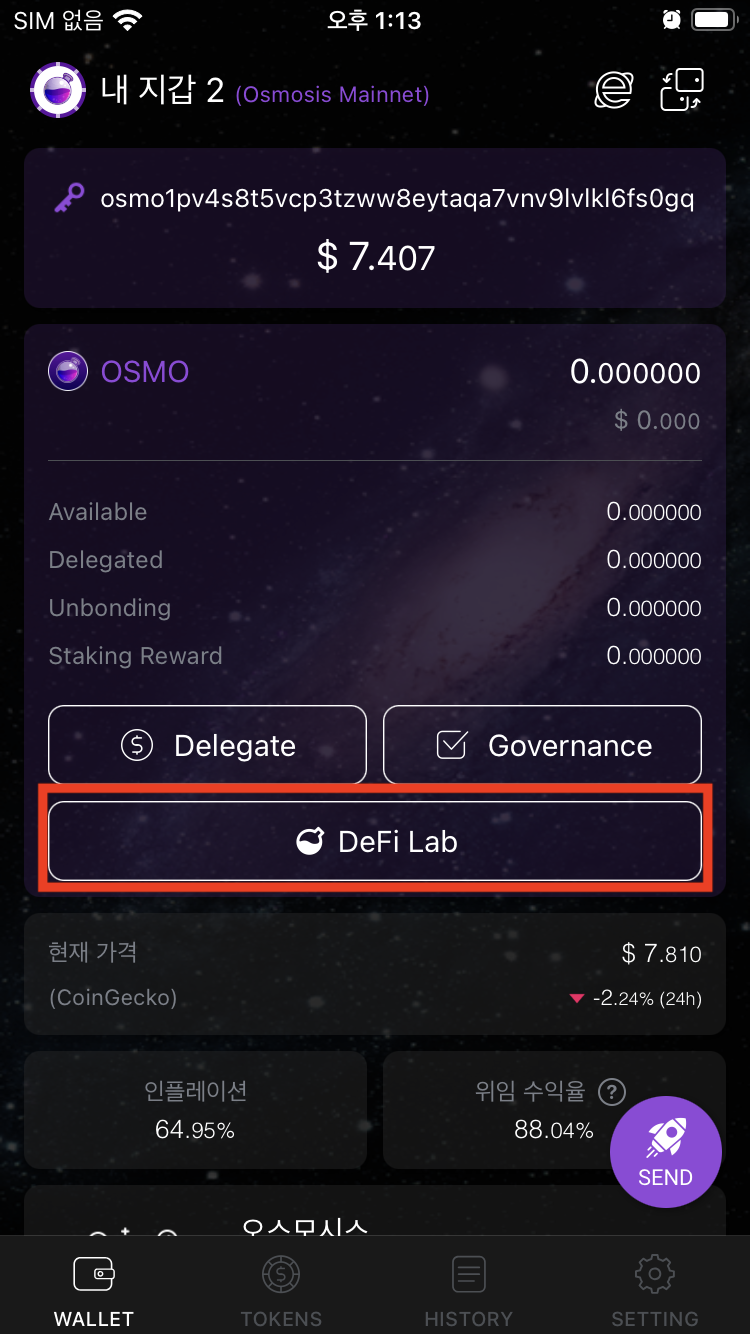 7.3 오스모시스 지갑에서 DeFi Lab 선택