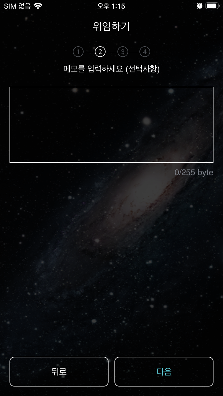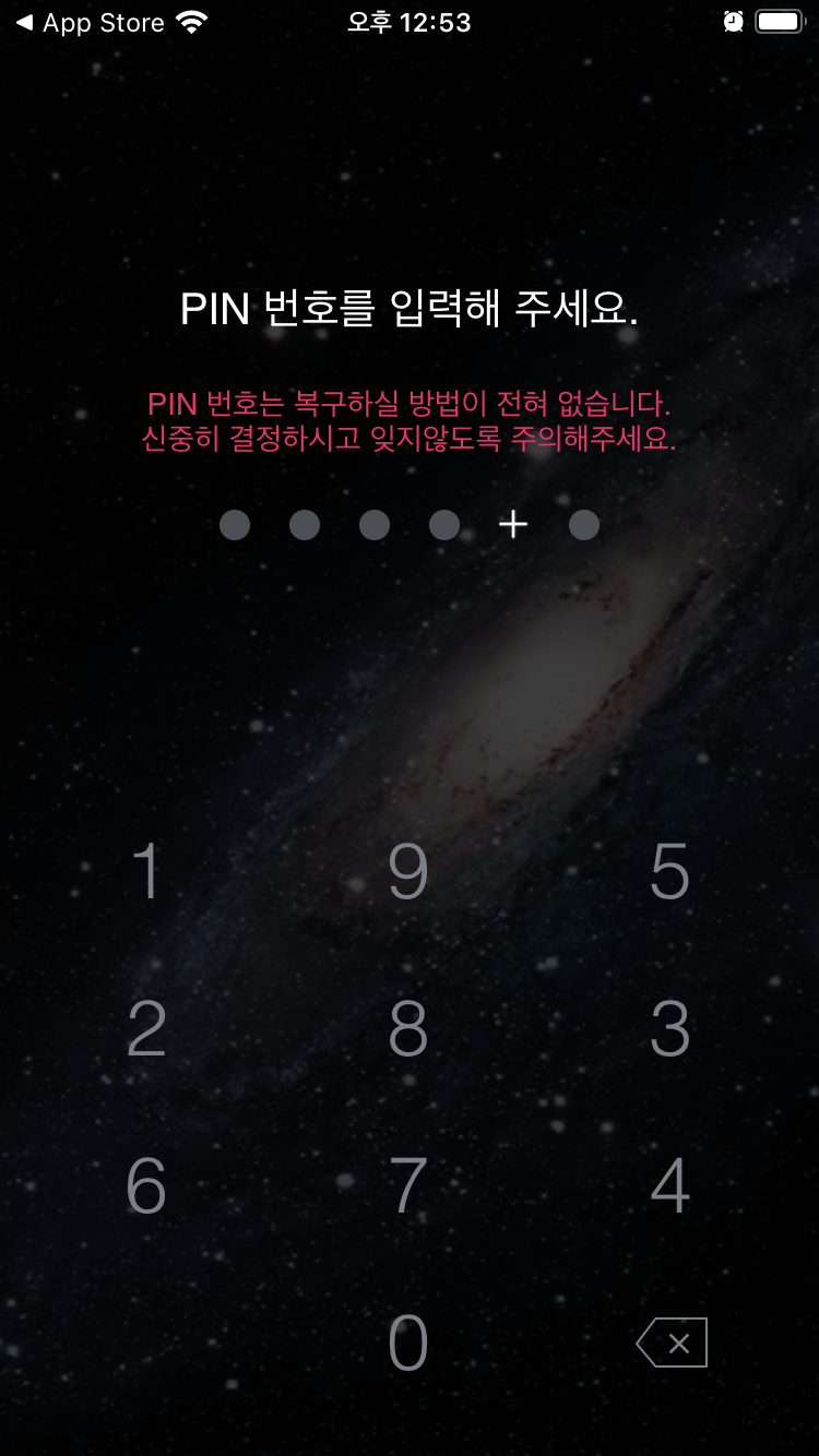 2.4 비밀번호를 입력해야 한다. 이 비밀번호는 코스모스테이션 지갑에 대한 비밀번호다. (아톰의 개인키 이런게 아님) 본인만이 아는 비밀번호를 입력(숫자 4개와 영문자 하나를 입력해야 한다.)