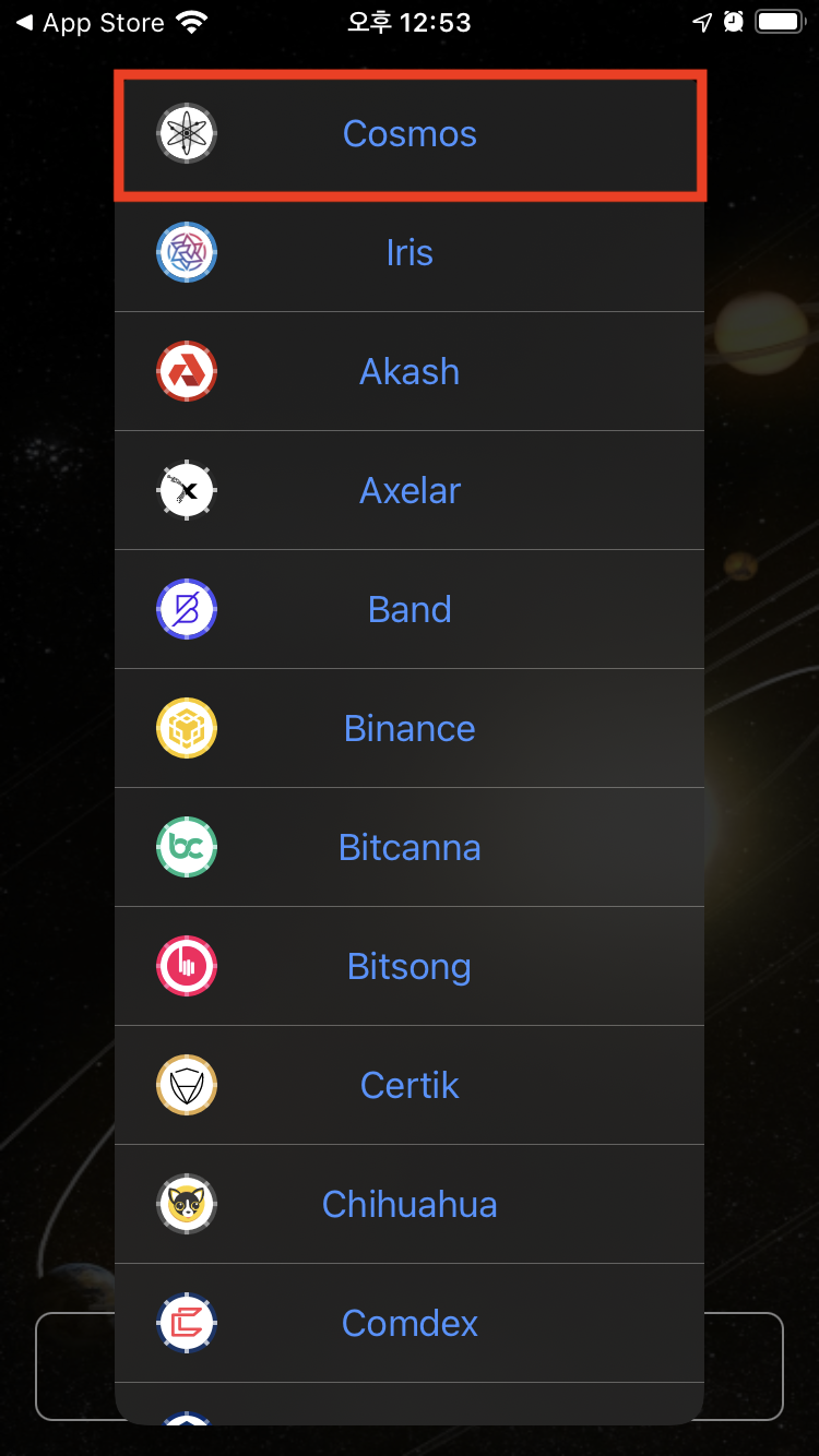 2.1 제일 첫번째 Cosmos 선택 (이게 아톰지갑)