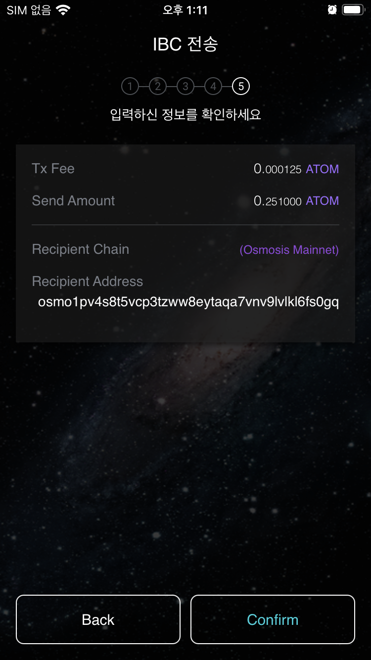 6. 코스모스테이션 지갑에서 아톰을 오스모시스 IBC로 보내기