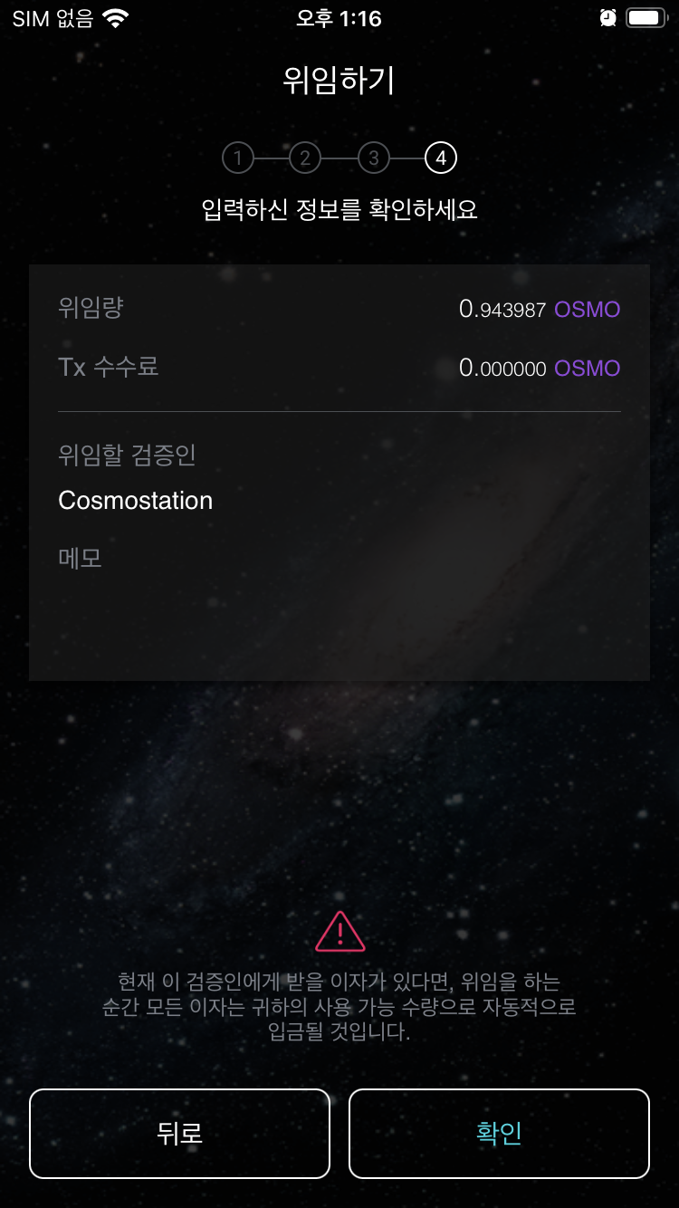 4. 코스모스테이션 지갑에서 오스모시스주소 생성