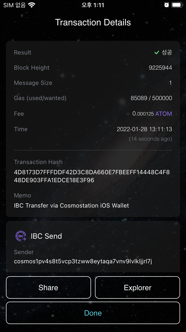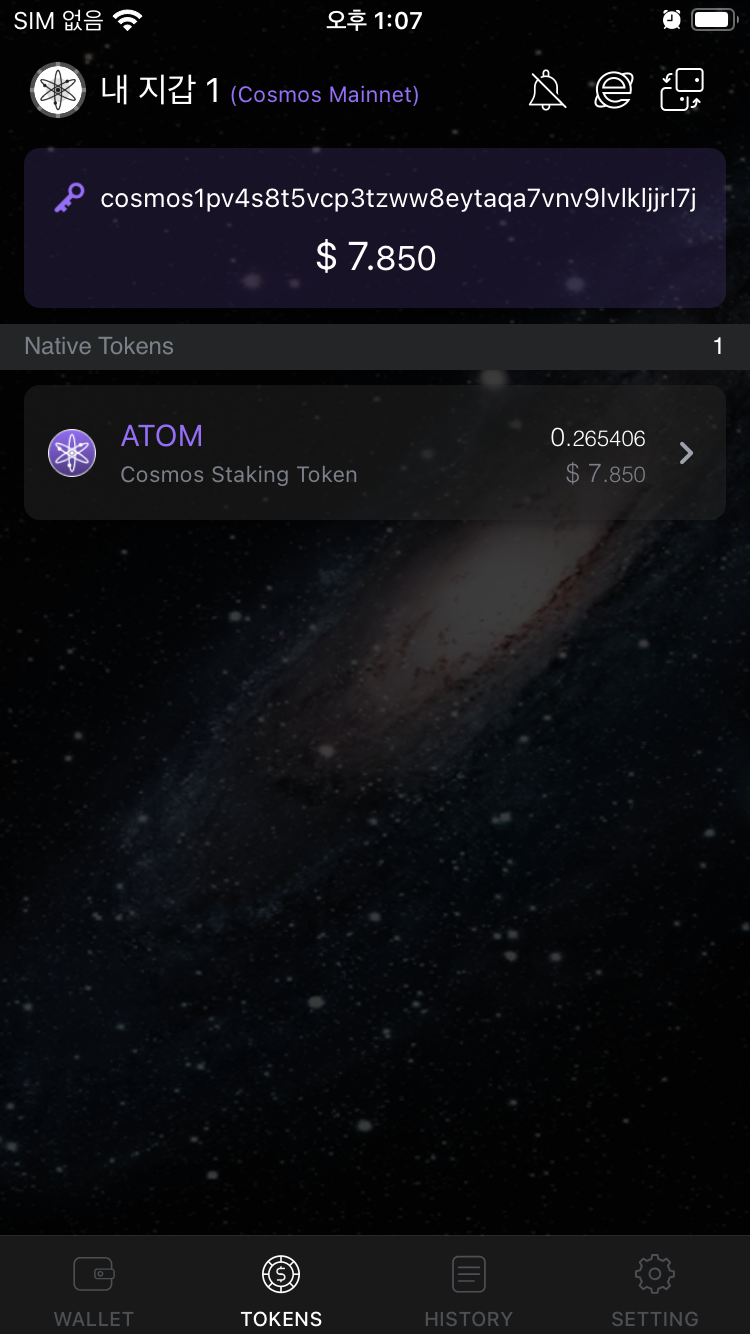 정리를 하면, 코스모스테이션 지갑을 만들었고,