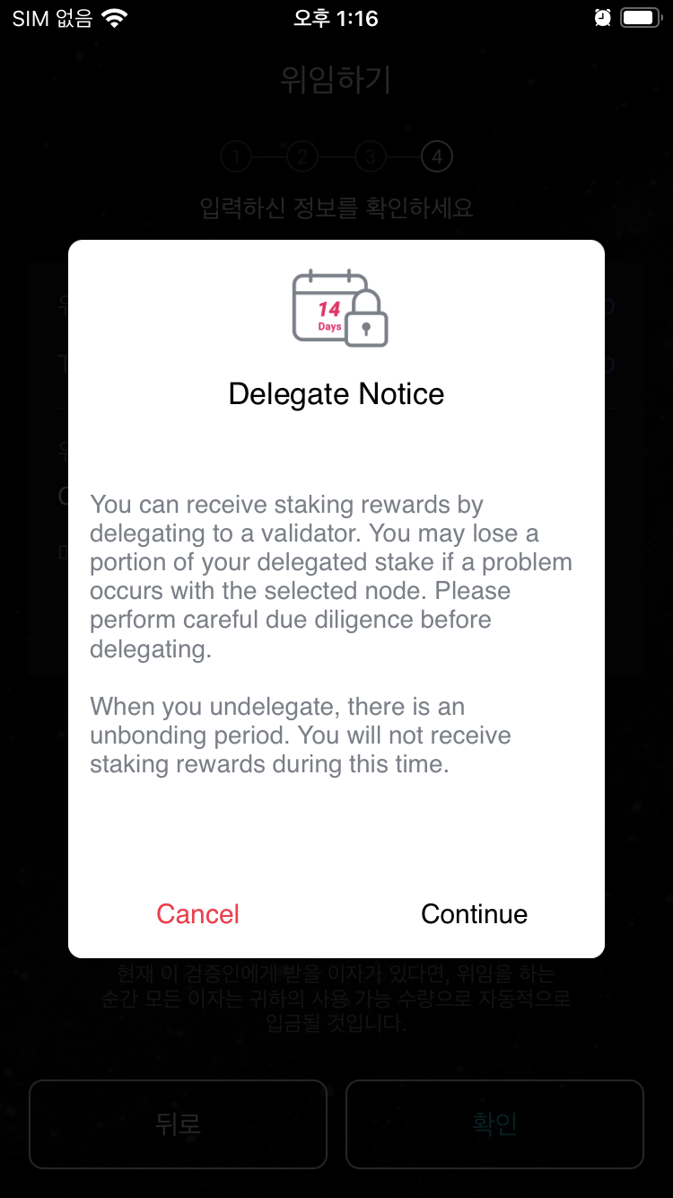 7.10 검증인 선택 후, 위임하기