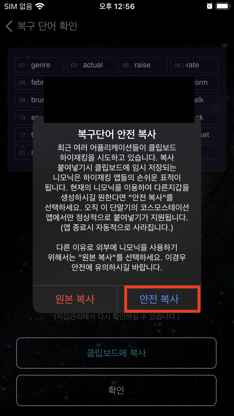 3.4 복구단어 확인 - 클립보드에 복사