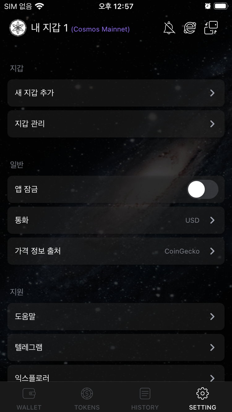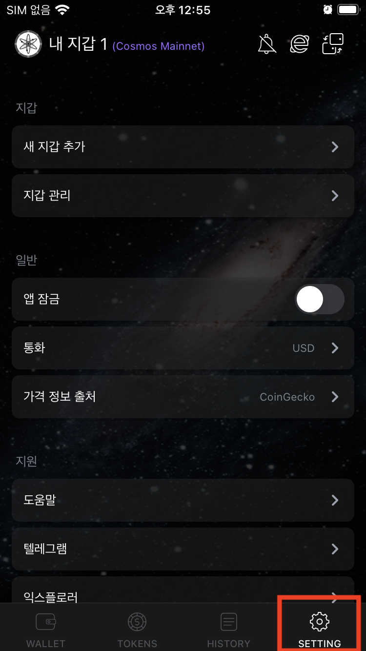 3. 1 내지갑에서 셋팅 클릭