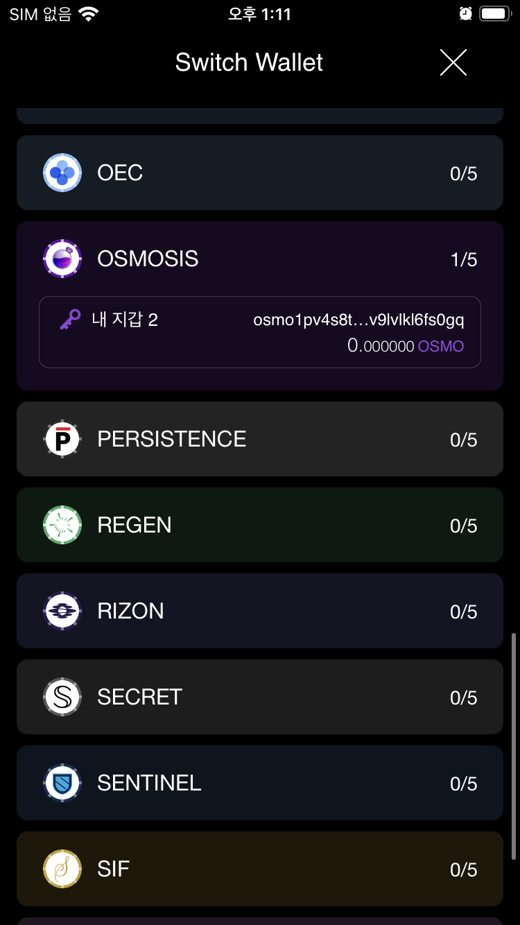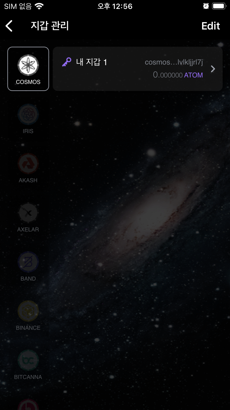 3.2 지갑관리에서 코스모스 선택