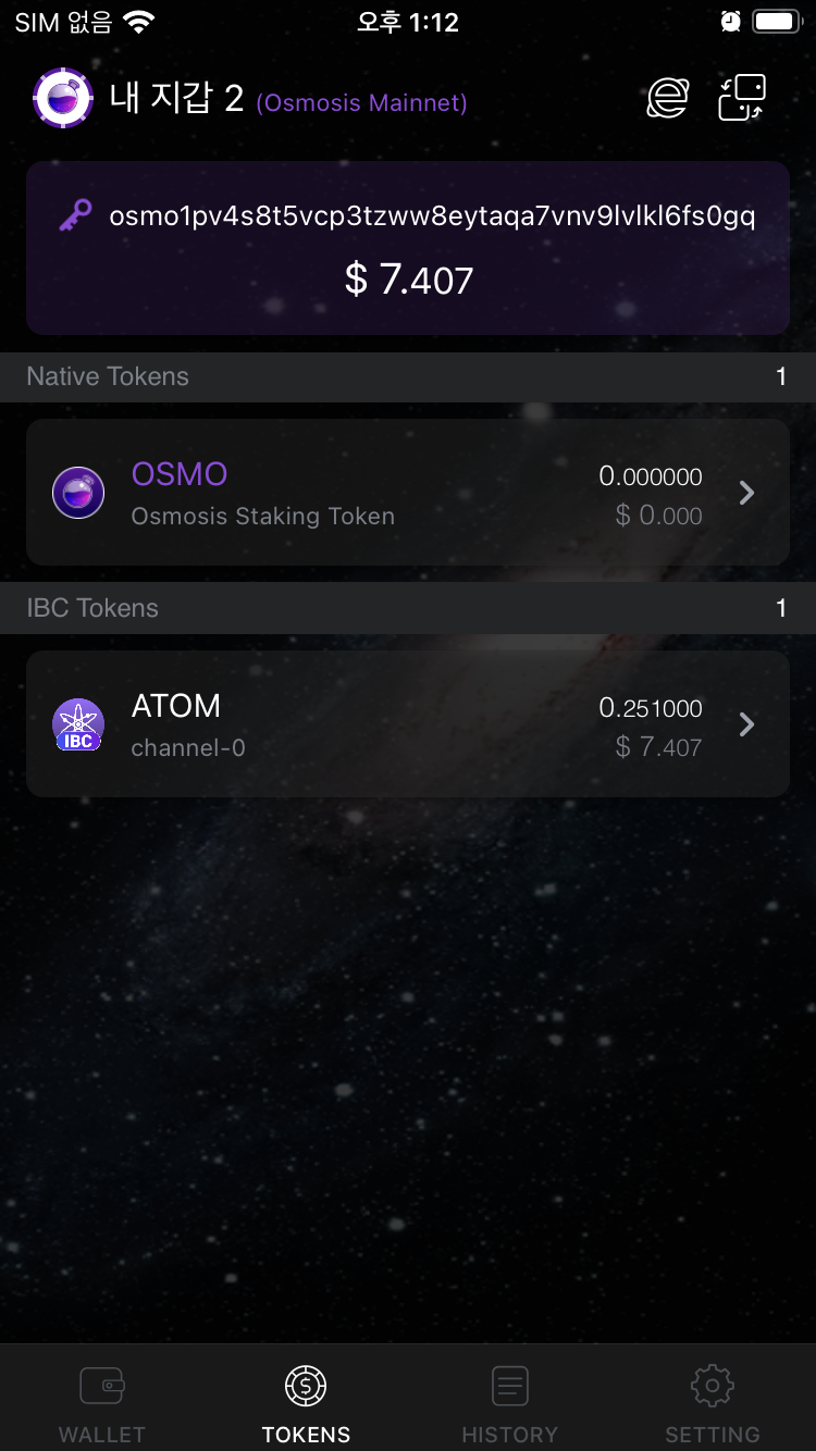 7.2 오스모시스 지갑에서 IBC token으로 ATOM 들어온거 확인하기