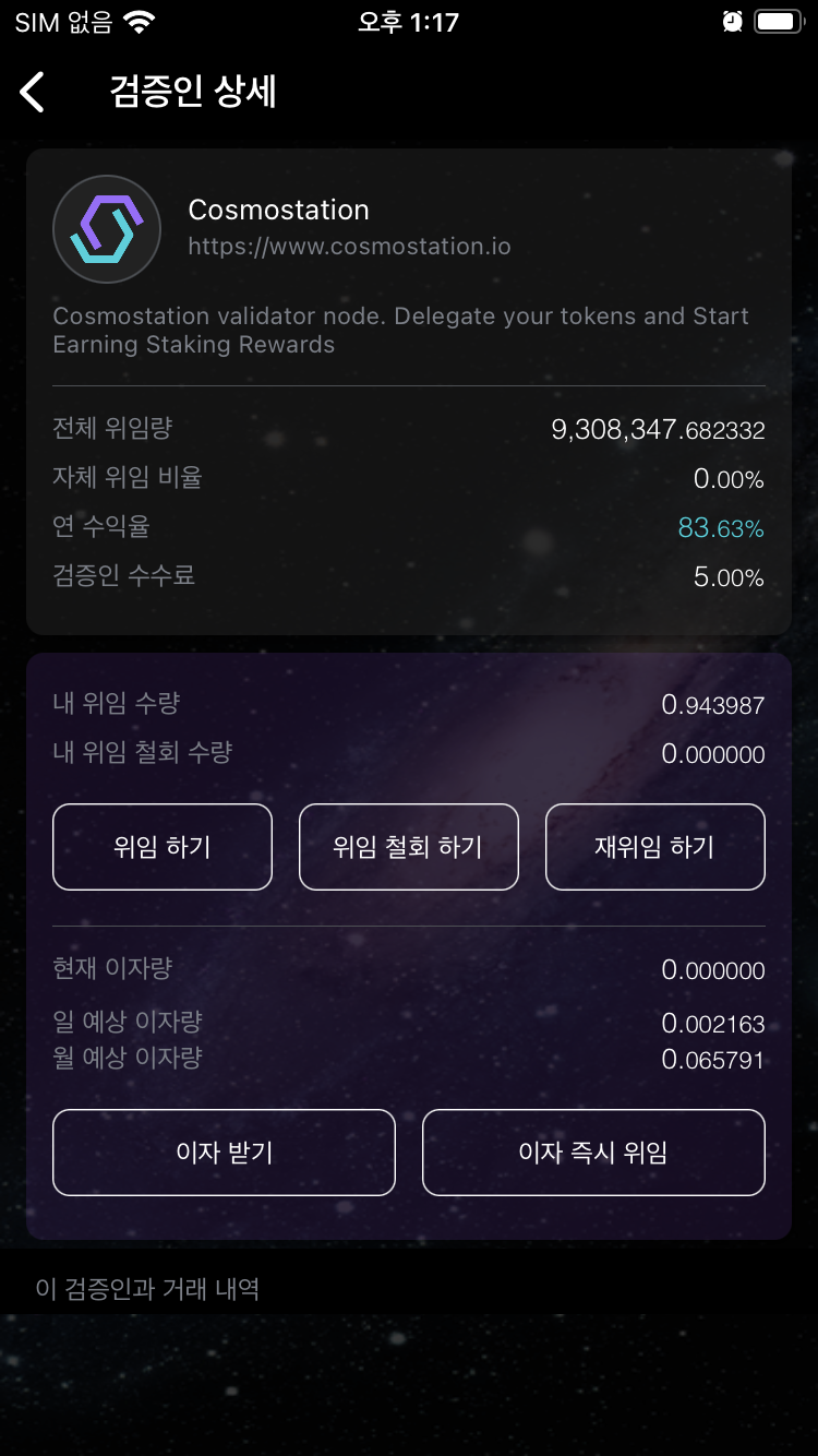매일 스테이킹 이자로 발생한걸 이자즉시 위임으로 매일 재예치하면 복리로 수량이 늘어난다!!!!