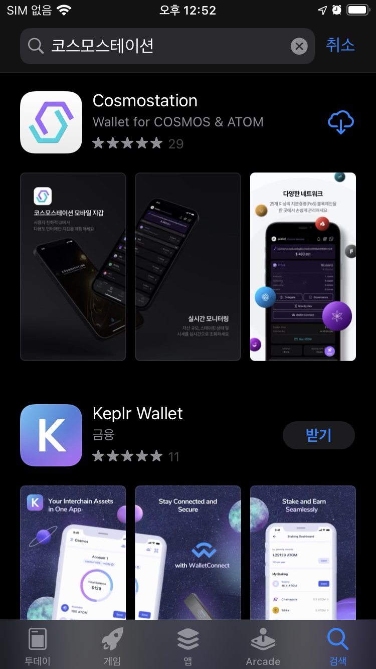 1.1 앱스토어에서 코스모스테이션 검색
