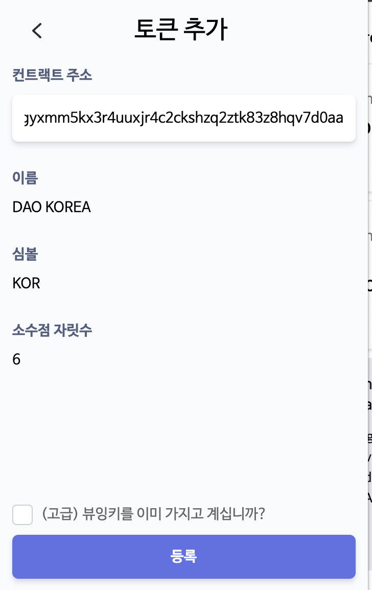 * DAO KOREA Token 케플러 지갑에 추가방법