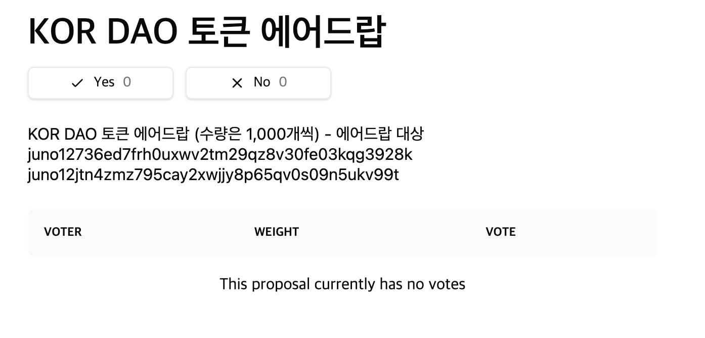 3.3 방금 제안한 투표의 내용을 보면 아래와 같이 뜹니다.