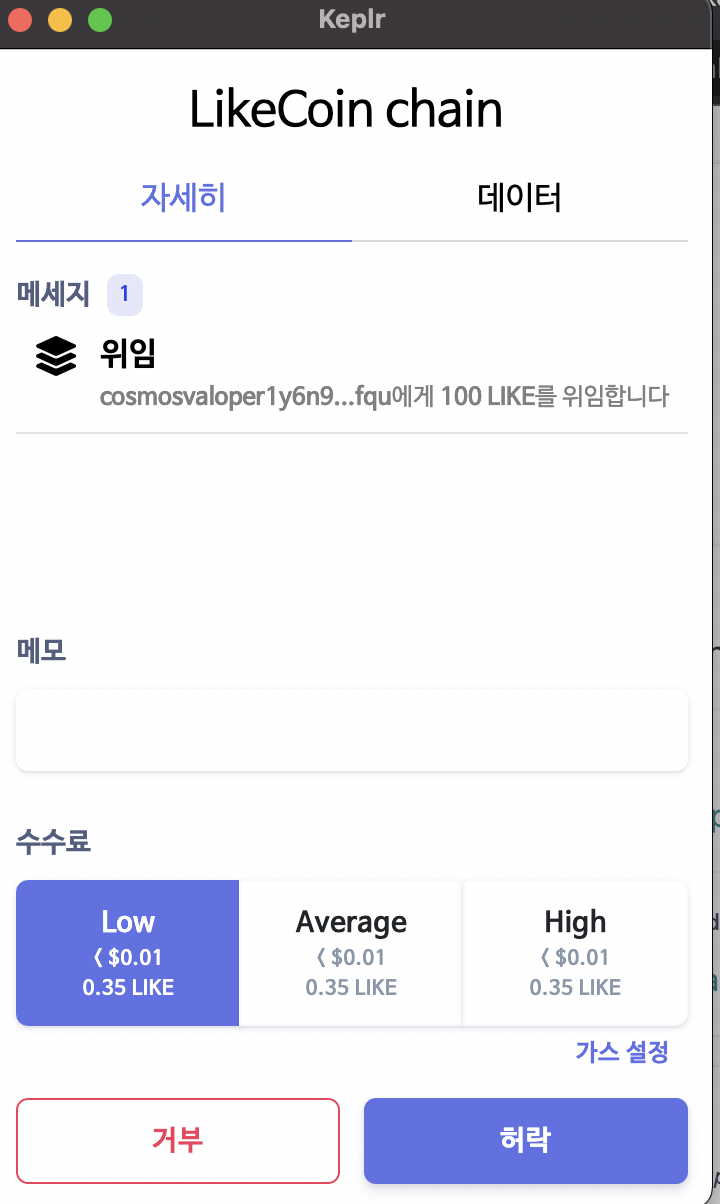 케플러에서 사인을 요청하는걸 보낸다는 메세지를 클릭.