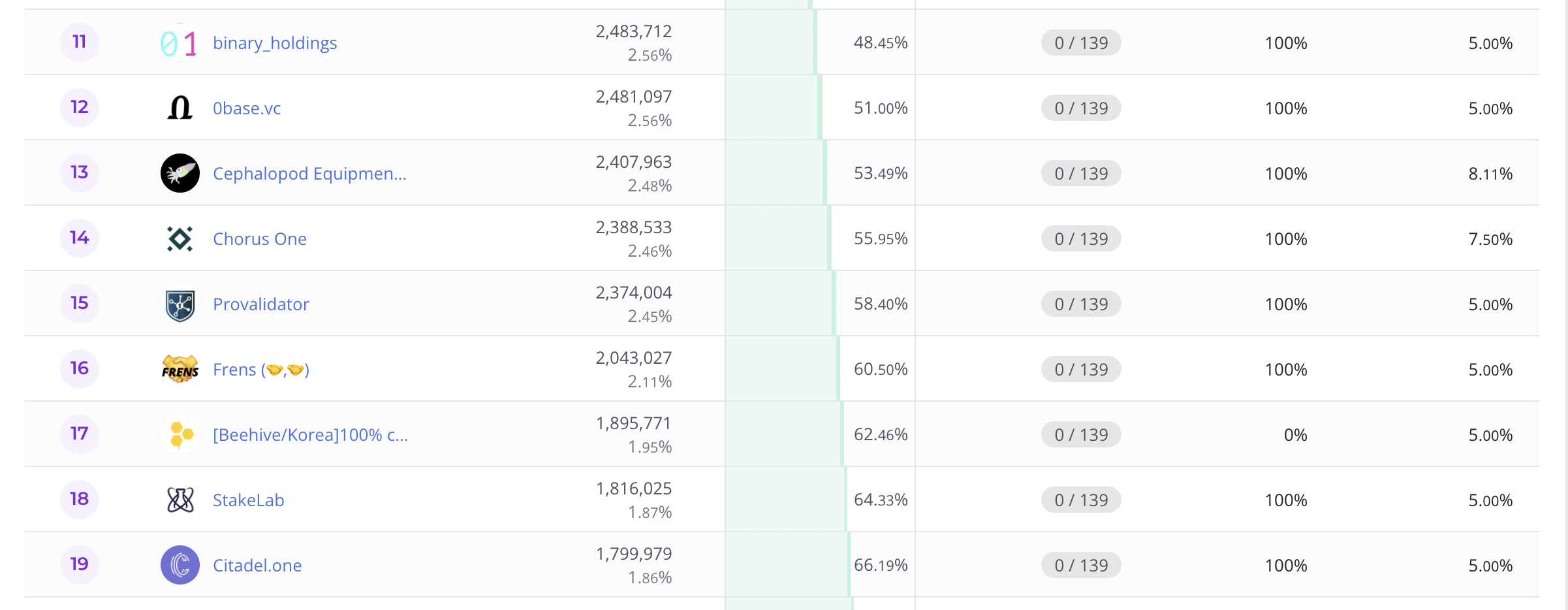 5. 프렌즈 검증인 오스모 순위 (현재 기준 프랜즈 검증인 순위는 16위다.)