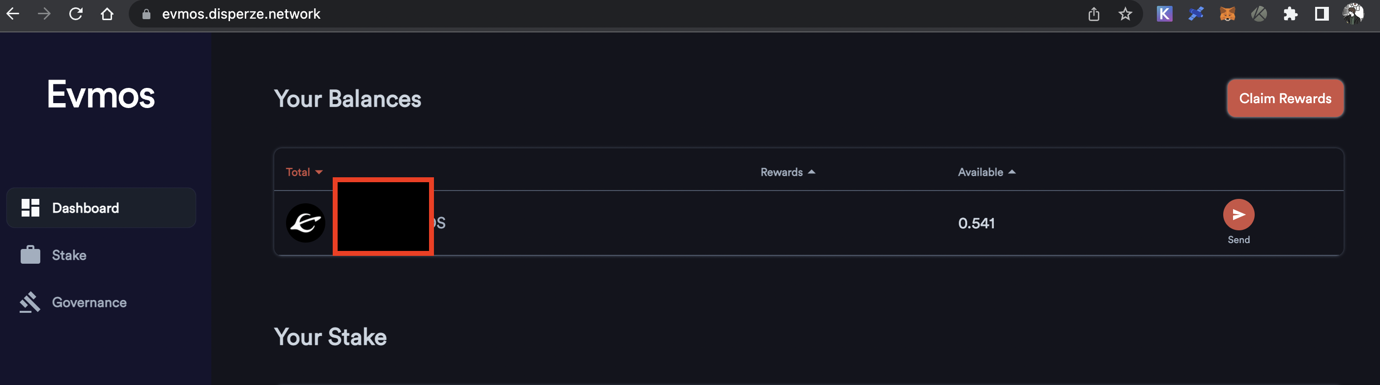 -evmos 메인페이지를 가면 잔고가 나올겁니다. 그리고 스테이킹 되었으니 적당한 시기마다 상단 Claim Rewards를 통해서 리워드 수령후 재위임 하면 됩니다. (물론 거래소에서 다 팔아도 되지요!!!!)