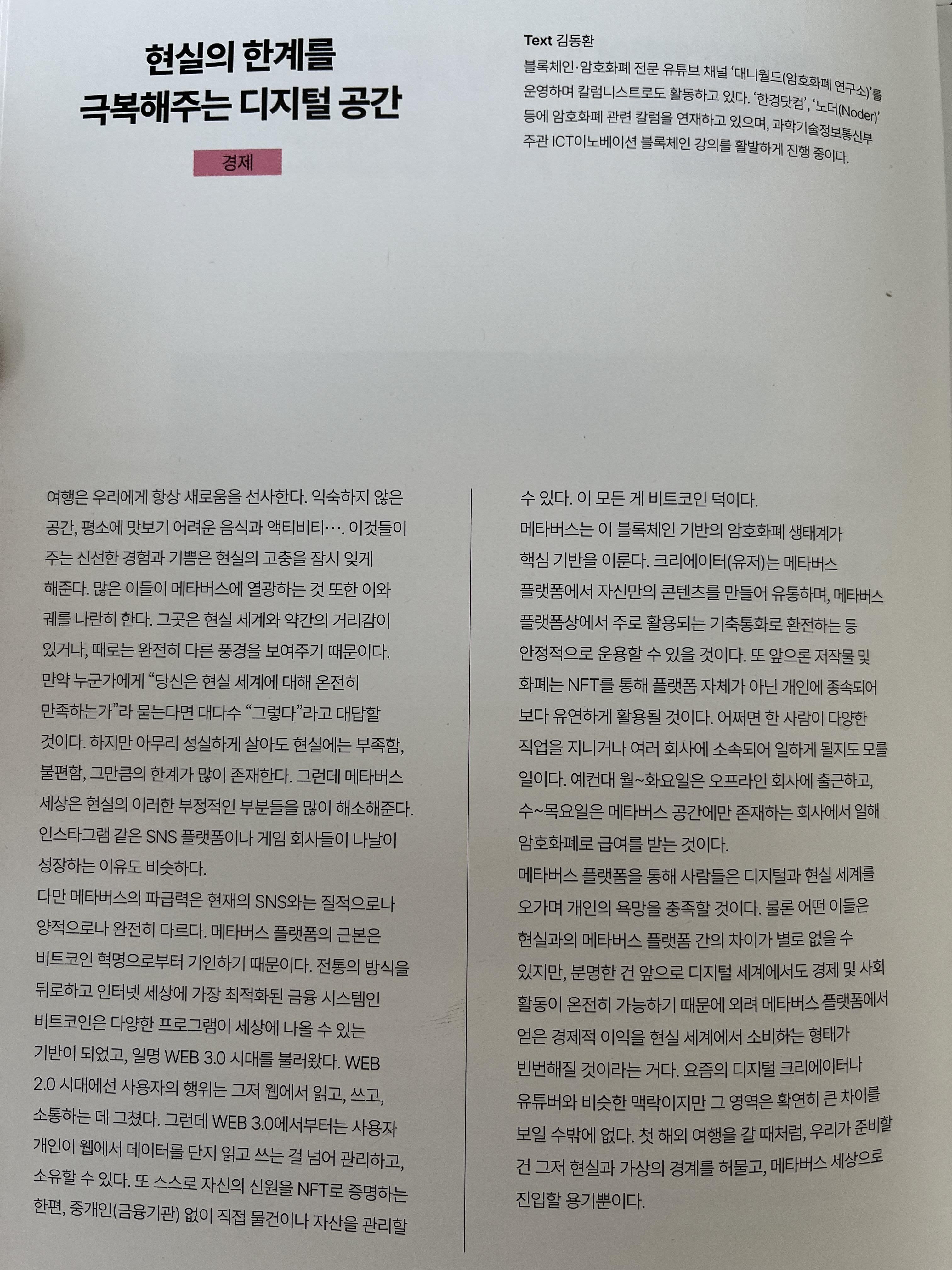 암호화폐 및 경제/암호화폐 칼럼 현실의 한계를 극복해주는 디지털공간 메타버스 (현대모터스) by Danny_Kim 2022. 4. 29. 🔑 코인 투자 추천 링크 🔑 블록체인 마스터 과정 OKX 거래소 20% 수수료 할인혜택[공식 파트너] 바이비트 거래소 20% 수수료 할인혜택[공식 파트너] 모터스라인-현대모터스그룹매거진(22년 4월 기고문) 공유하기 게시글 관리 대니월드(크립토 세상) 저작자표시 비영리 변경금지 (새창열림) 🔑 코인 투자 추천 링크 🔑 블록체인 마스터 과정 OKX 거래소 20% 수수료 할인혜택[공식 파트너] 바이비트 거래소 20% 수수료 할인혜택[공식 파트너] 관련 컨텐츠 크립토 하락장 대처방법 주식시장의 우량주는 안전한가? 크립토 시장 어디쯤에 와있나?(크립토 장기투자자라면 알아야 할 우리의 위치) 메타버스 시대, 작가와 출판업계는 상생할 수 있을까? 댓글