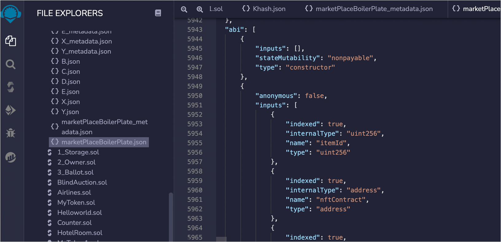 7. marketplaceBoilerplate.sol을 ropsten에 deploy하여 Contract Address, ABI 가져옴.