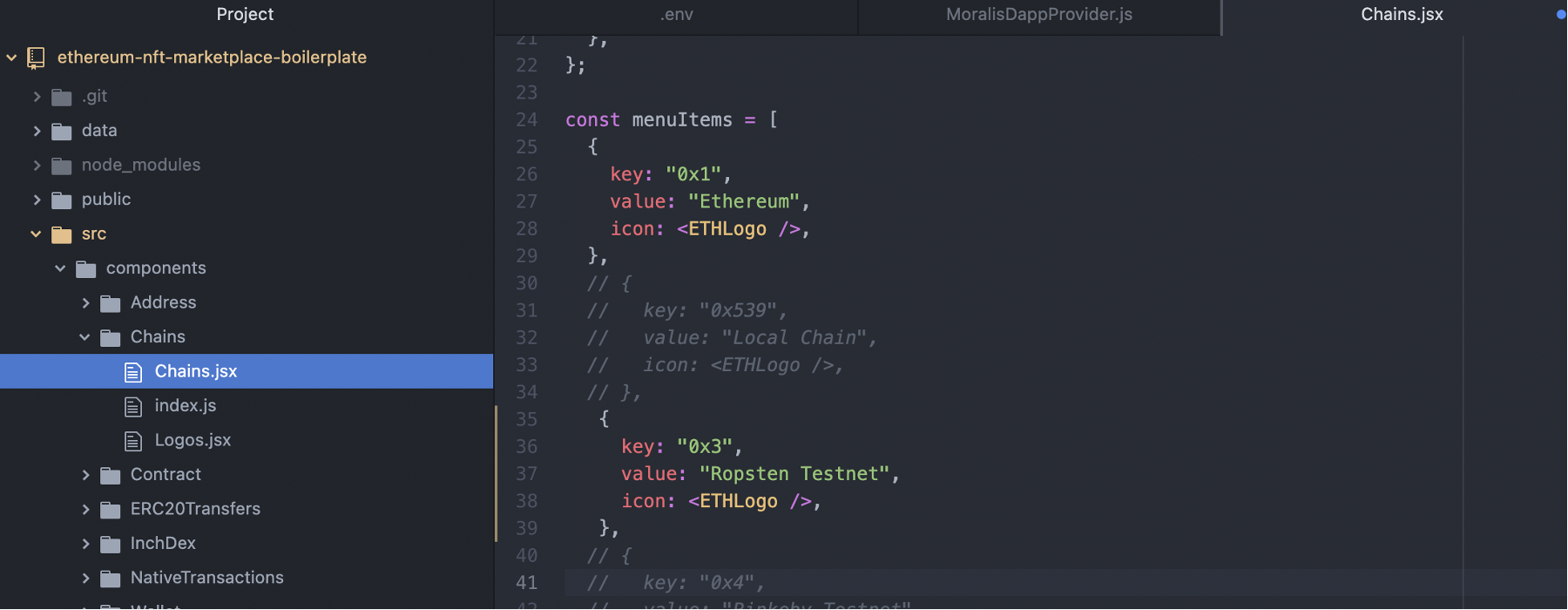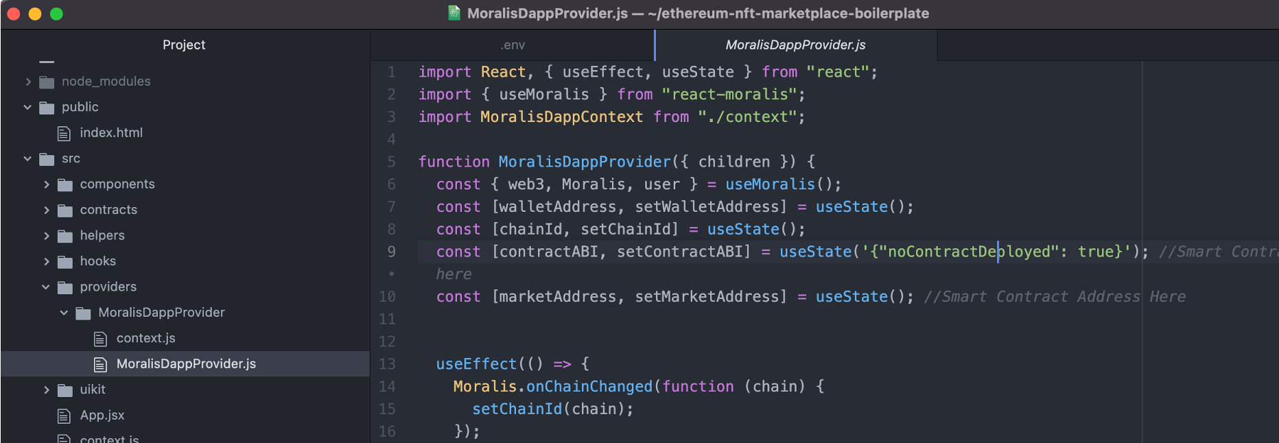 - MoralisDappProvider.js에 컨트랙트 주소 넣기.
