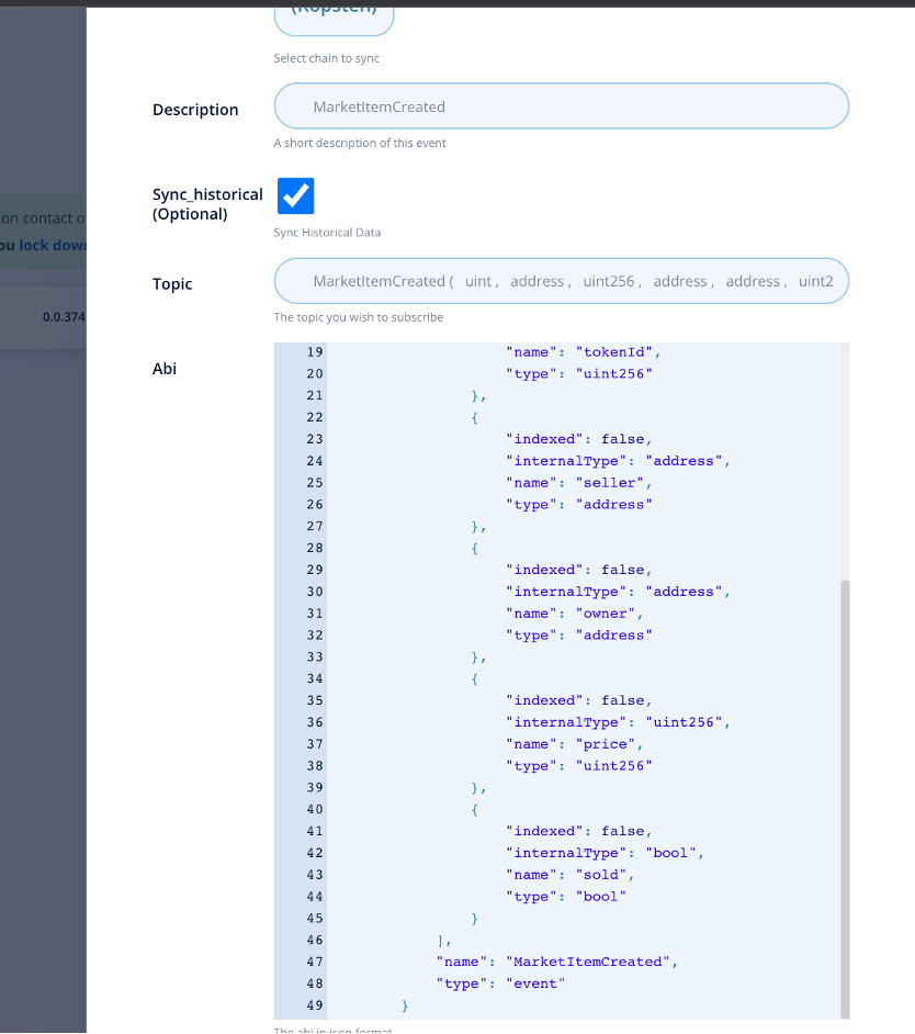- (*) ABI에서 MarketItemCreated 부분만 복사.