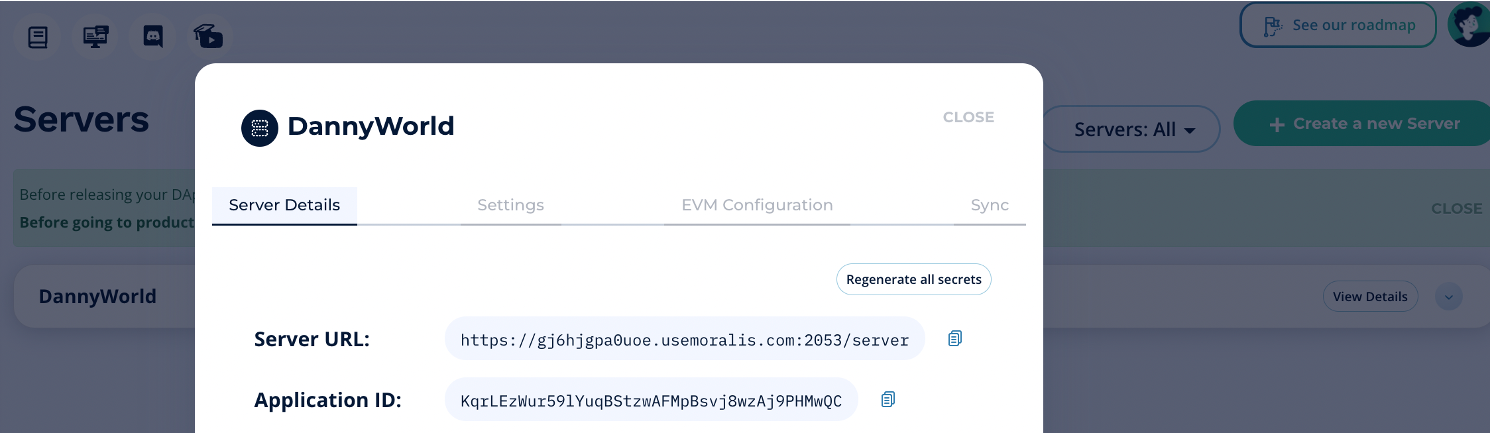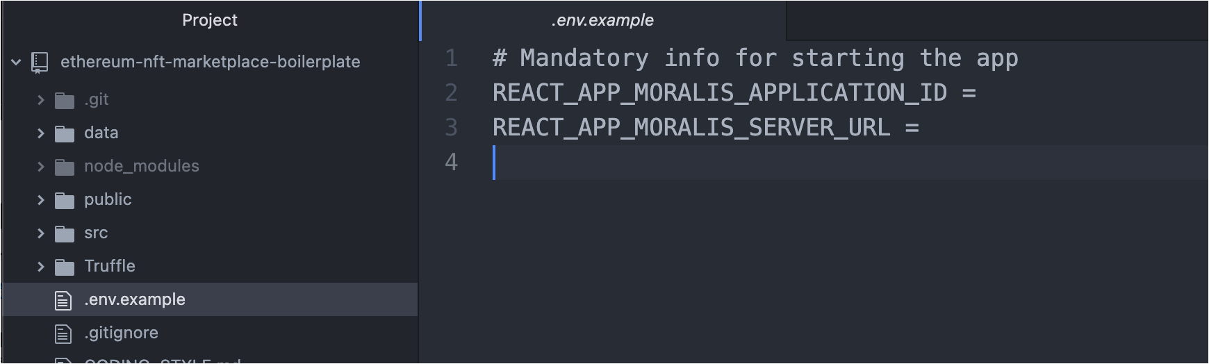 6. Moralis에서 서버 url 및 Application ID 가져온 후, .env에 붙여넣기