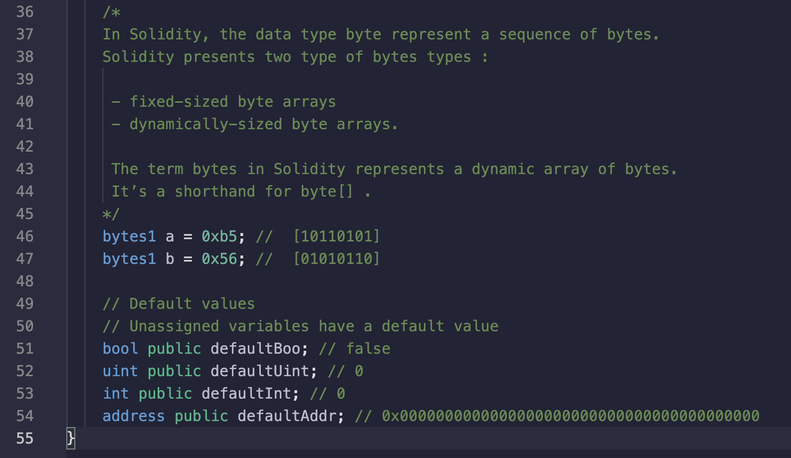 bytes1 b = 0x56; // [01010110]