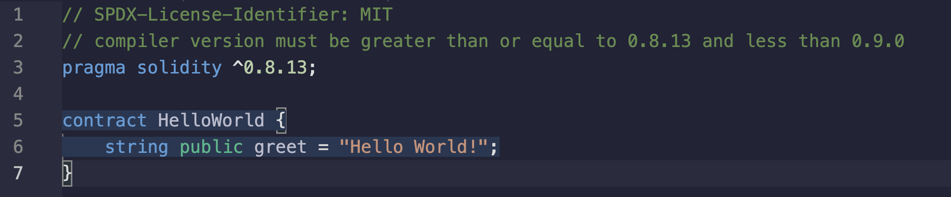 1) 과제 ) 자신의 이름의 컨트랙트를 만들고, 자신에게 인사하는 문자를 출력해보세요!(블록체인에 기록해보세요!)