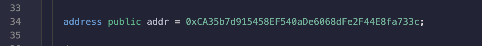 address public addr = 0xCA35b7d915458EF540aDe6068dFe2F44E8fa733c;