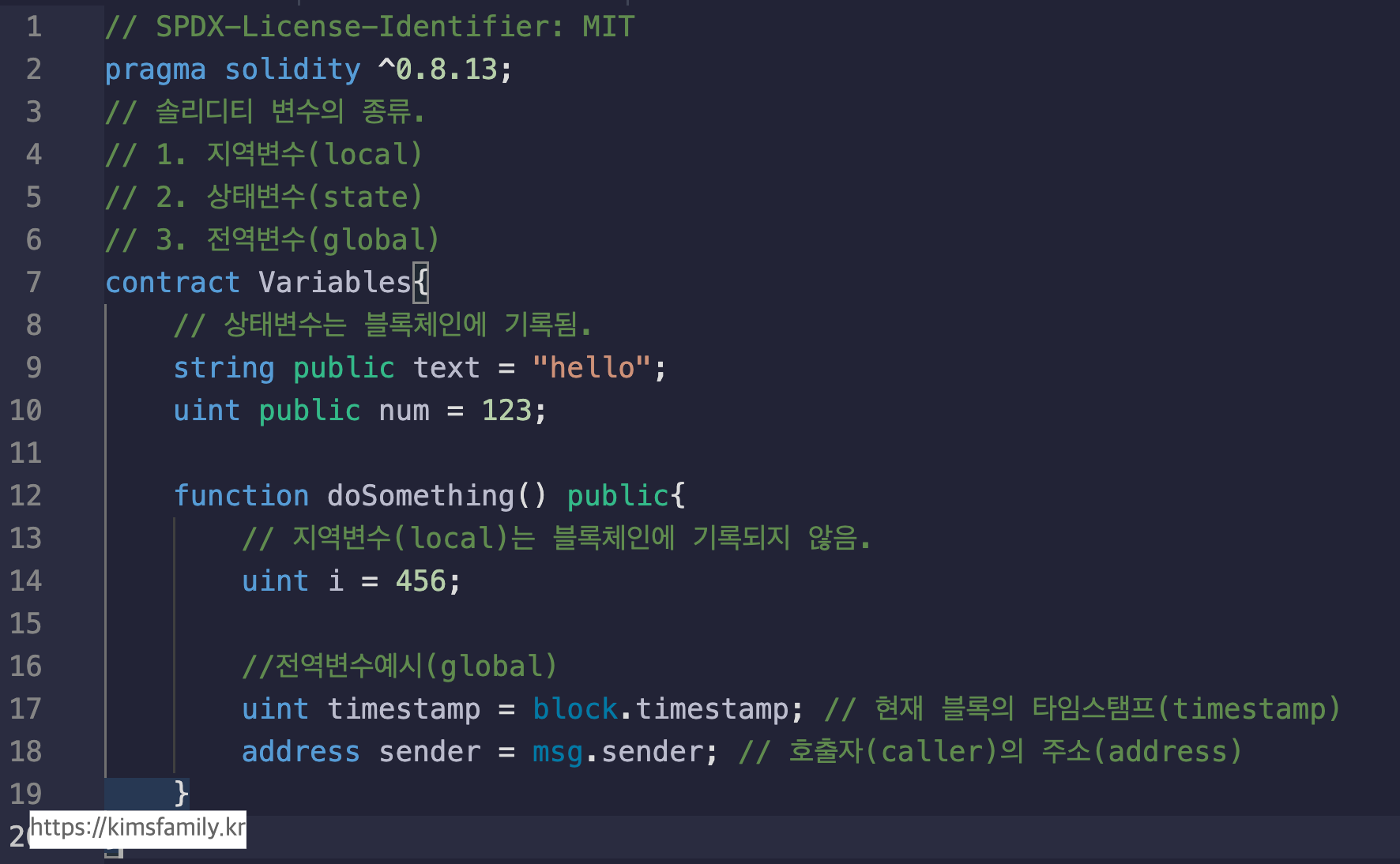 - 솔리디티에서는 3가지 변수 타입이 존재한다.