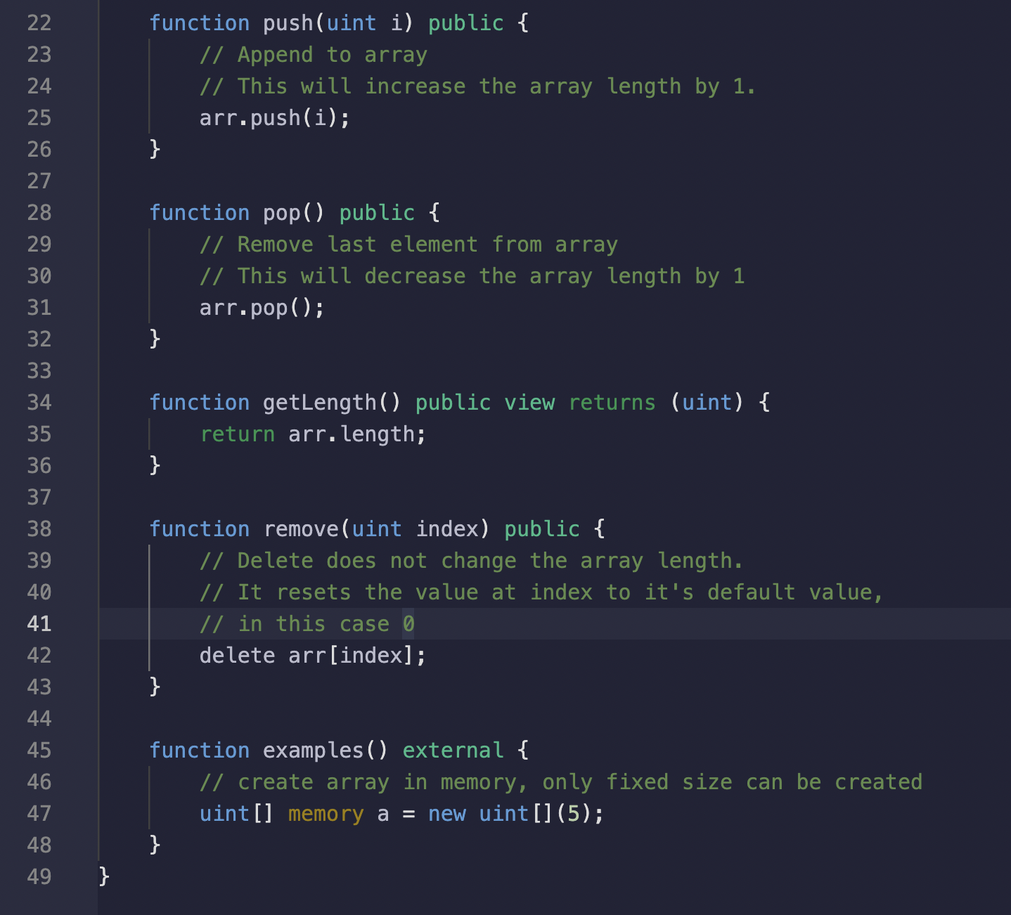- 솔리디티에서 배열은 정적배열(컴파일시점), 동적배열로 사용이 가능하다.