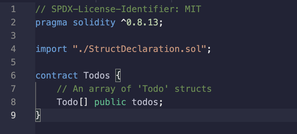 - 컨트랙트 밖에서 선언될 수 있고 다른 컨트랜트로 가져올(imported) 수 있음