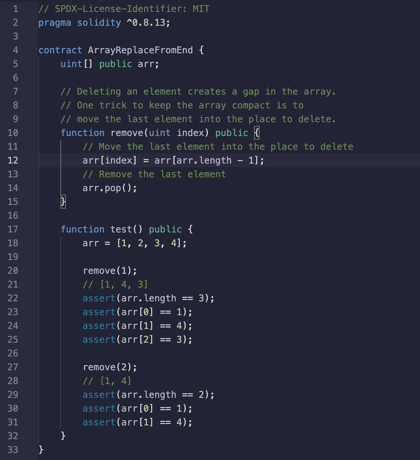 - 원하는 배열 요소를 제거하고 제일 끝에 있는 요소를 제거한 배열로 대체