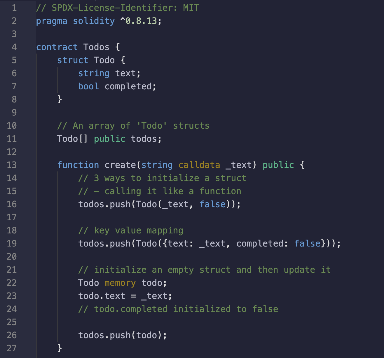 * Memory와 Calldata의 차이점은 Memory는 수정이 가능하지만 Calldata는 수정이 불가함.