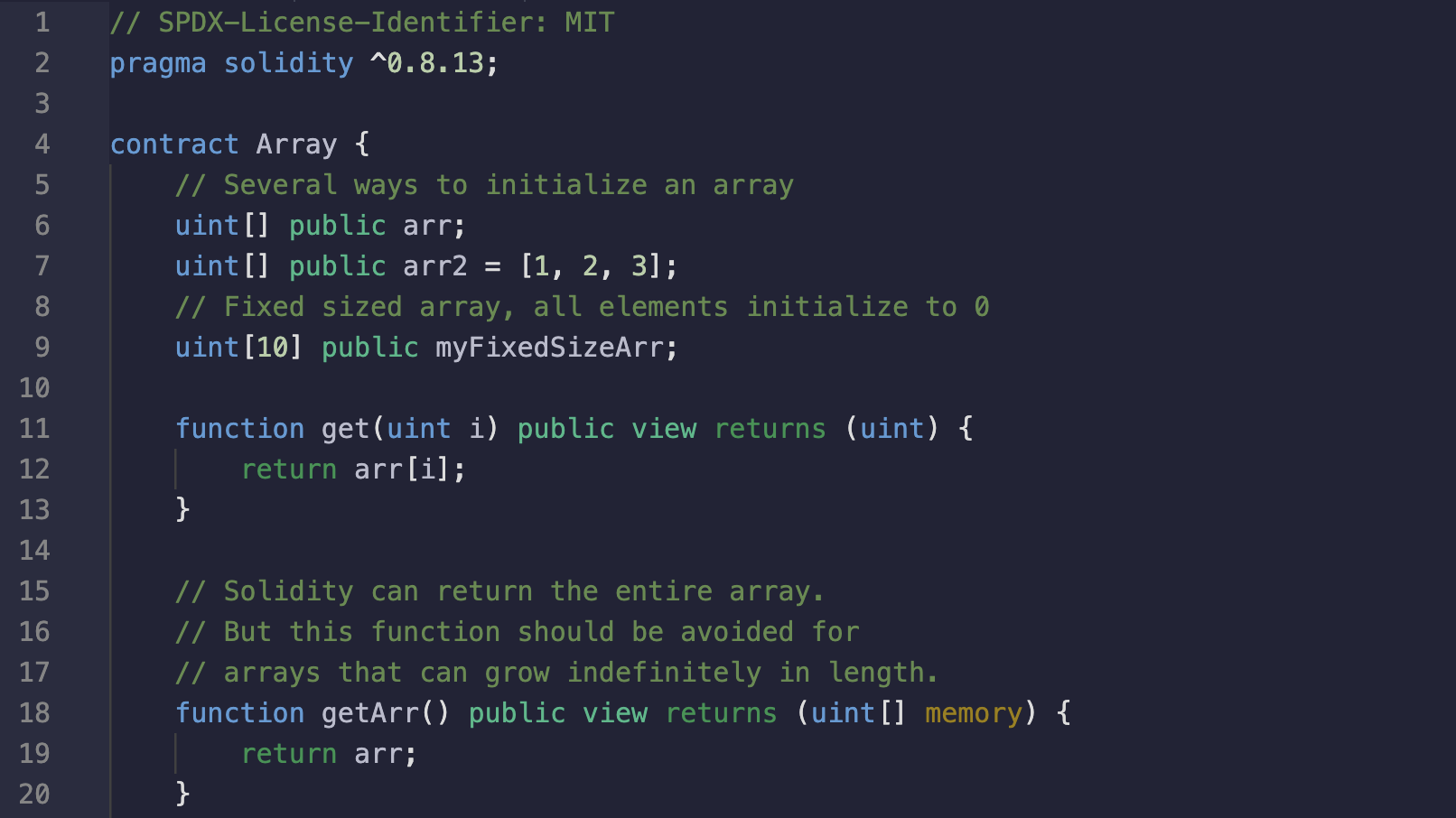 - 솔리디티에서 배열은 정적배열(컴파일시점), 동적배열로 사용이 가능하다.