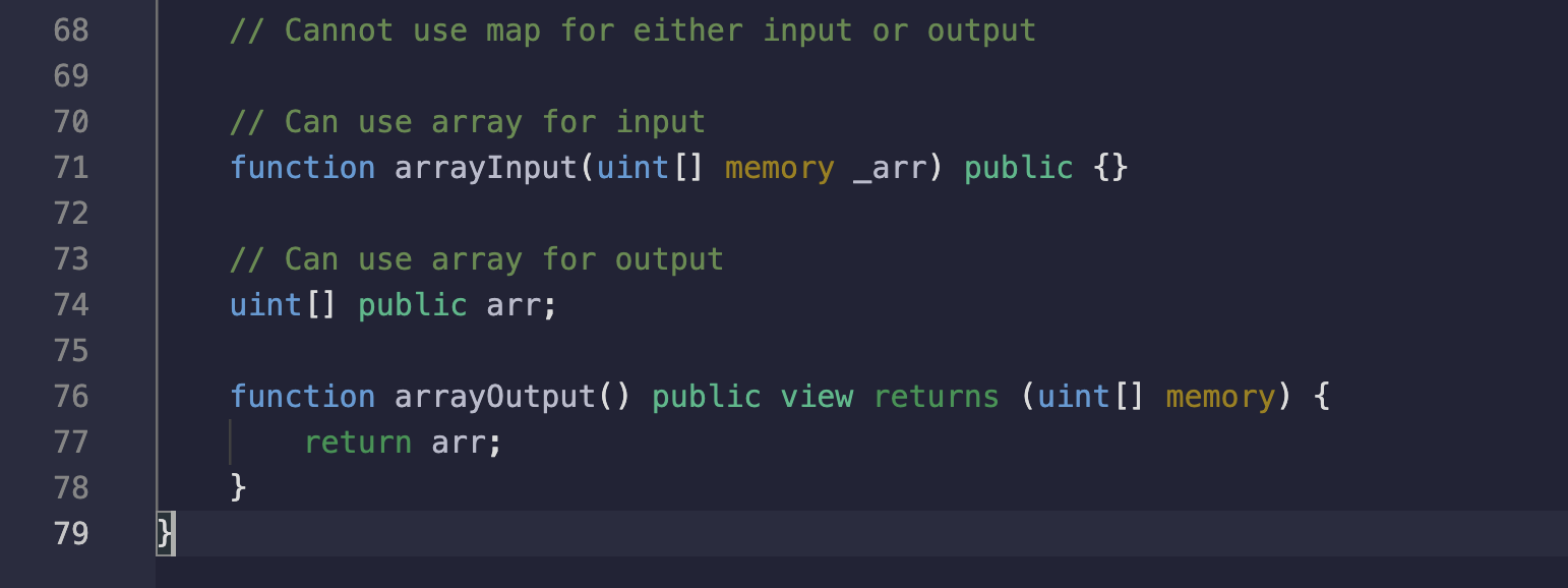 function arrayInput(uint[] memory _arr) public {}