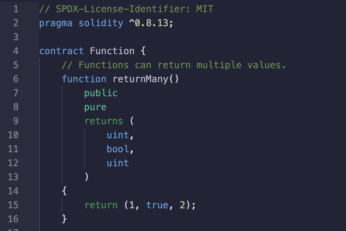 (uint i, bool b, uint j) = returnMany();