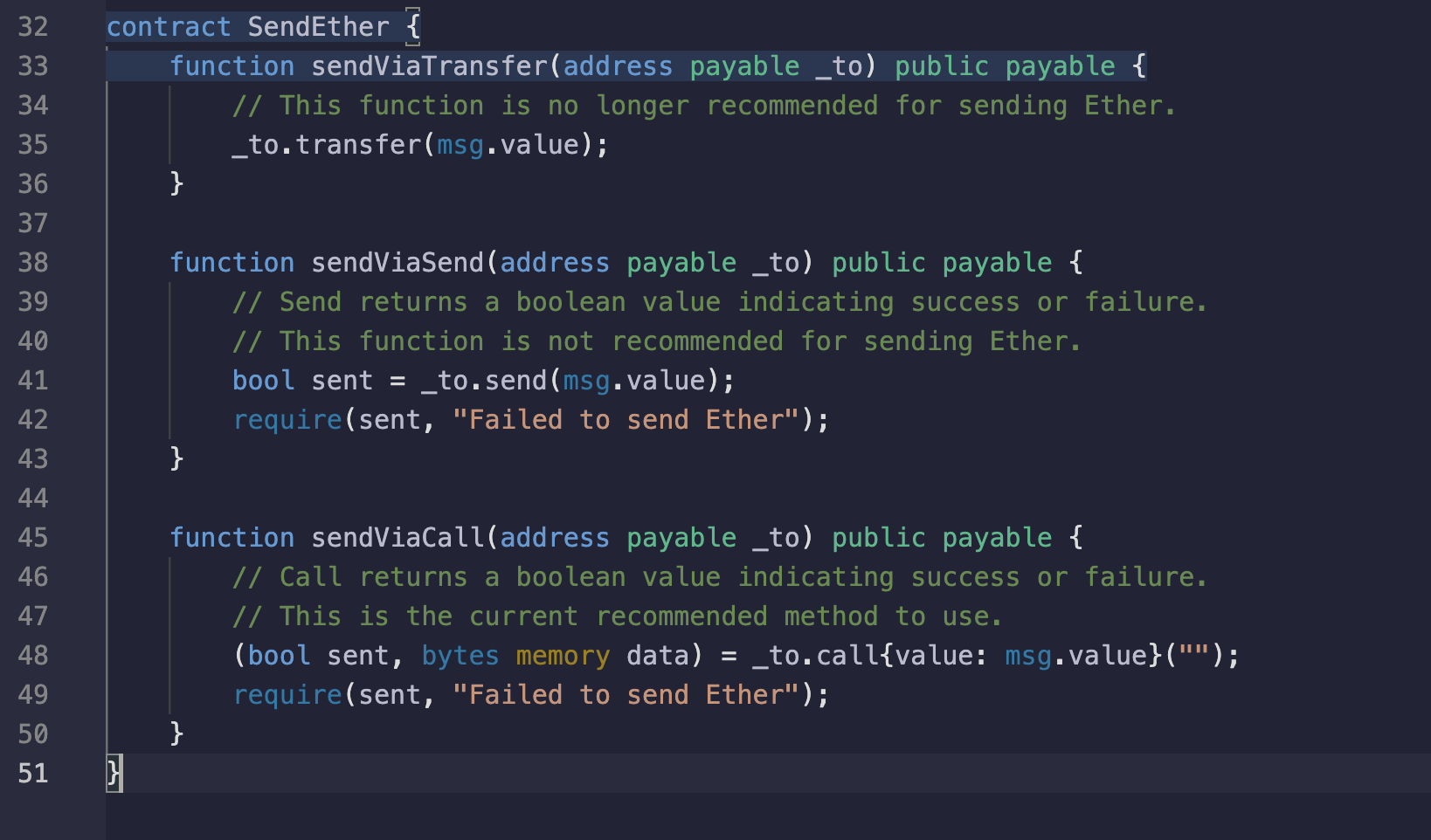 - Transfer() 함수는 2300 gas가 소모되고, 실패의 경우 error 를 발생시킴