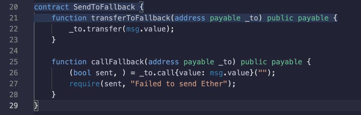 - transfer()와 call()을 사용하여 이더 전송.