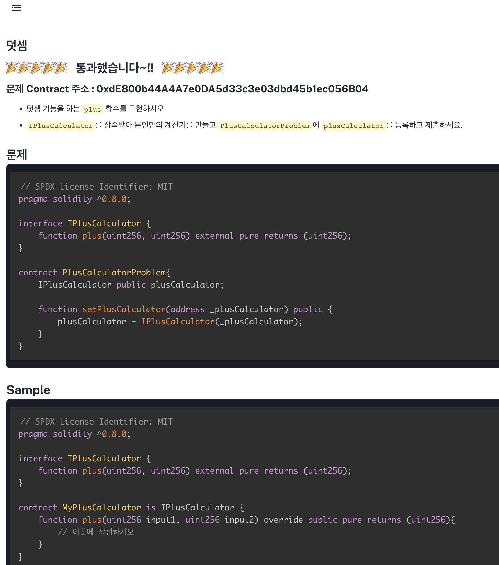 2)Web3OJ 튜토리얼 웹사이트에서 첫번째 문제를 클릭하면, 아래와 같이 뜹니다.