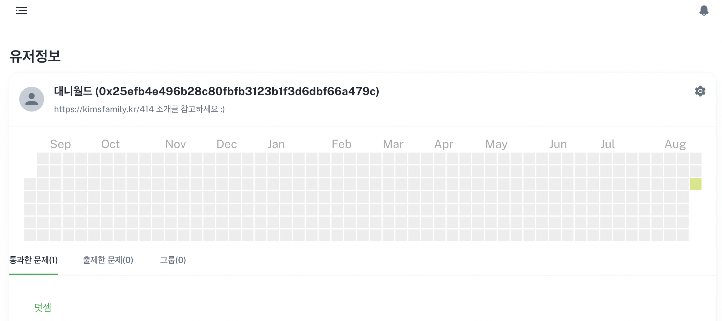 그리고 유저정보에 본인이 패스한 문제들을 확인 가능합니다.